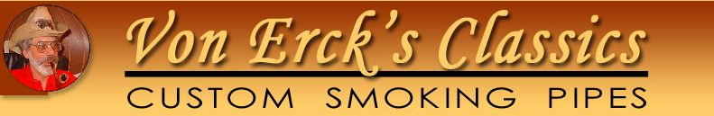 Lee von Erck定居在Michigan州上部的半岛。当地的春季天气是多变的,一天之间,可能会经历灿烂的阳光和美丽的雪景。对于第一次来这里旅游的人,这是令人激动的。Von Erck就在这片土地上制作着烟斗,15年的制作经验让他以烟斗构造和创作新意赢得了业内人士的尊重。 虽然Von Erck已经61岁了,但是对于烟斗制作,他依旧保持着高度的热情,并且不断的改善技术。Von Erck自小对烟斗有着兴趣。他的父亲与祖父都是烟斗客。Von Erck开始抽烟斗是在20世纪的50年代,那时他正在驻法的美军部队服役。因为那时香 烟在部队里很少,所以大部分士兵,包括Von Erck都开始抽烟斗。他的第一把烟斗是法国制作的Langchamps品牌。这把烟斗Von Erck至今收藏着,已经有了40多年的历史。 Von Erck在部队服役期满后,茫然的回到了Marquette,对未来的日子毫无计划。起初,他做了一名专业训犬员,带着他客人的爱犬在全国巡演。